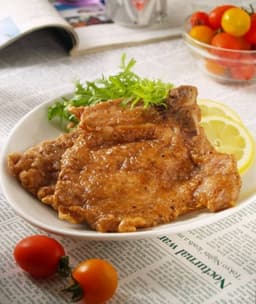 上選國產CAS品質保證的冷藏豬肉帶骨大里肌肉,先用刀切除筋膜再一片一片拍打鬆弛,過程完全純手工製作,是師傅們累積的經驗,厚薄拿捏的恰到好處。以多種師傅特調香料醃製入味,再裹粉漿。肉質鮮嫩有彈性,外皮酥脆可口,道地鄉土情、家鄉味。